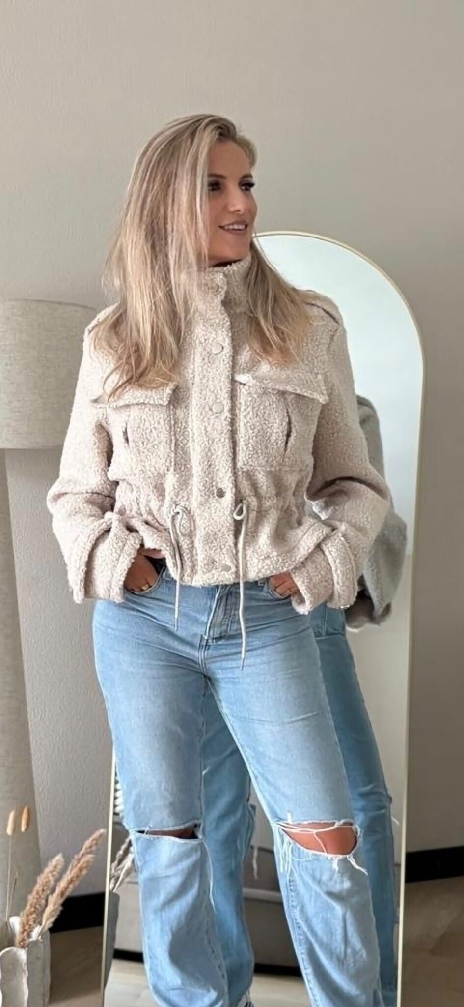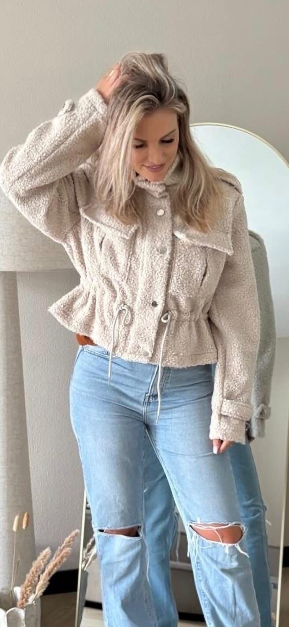 Zacht, stijlvol en onweerstaanbaar comfortabel – deze crèmekleurige teddy coat is een must-have voor de koudere herfstdagen. De jas is gemaakt van heerlijk zacht materiaal dat niet kriebelt, en dankzij het aansnoerkoord in de taille creëer je moeiteloos een flatterende pasvorm. De one size maat zorgt voor een relaxte, maar elegante look die bij elke outfit past. Perfect te combineren met lichte tinten of juist als contrast bij donkere herfstkleuren.