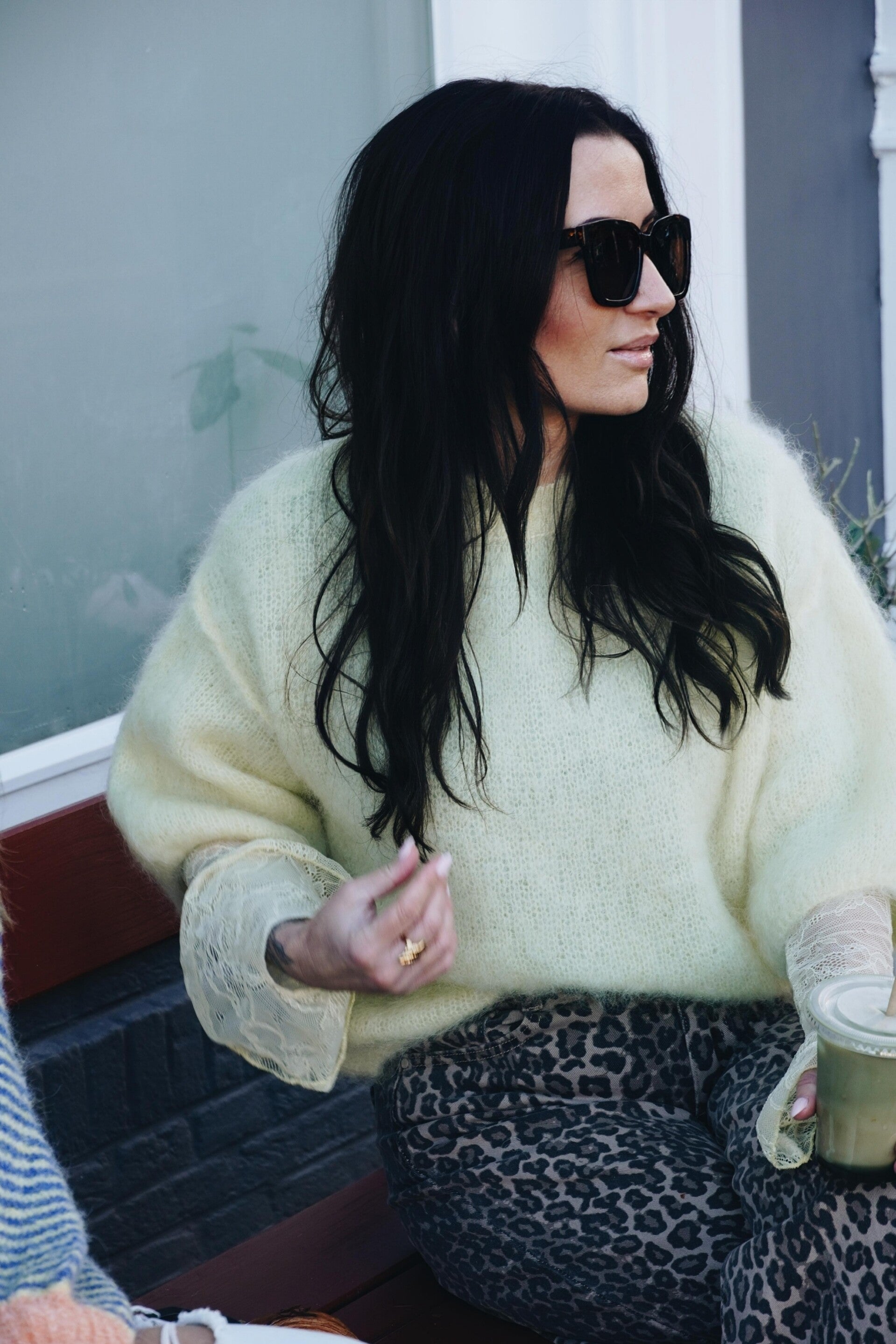 Geel kanten truitje onder de trui is apart verkrijgbaar