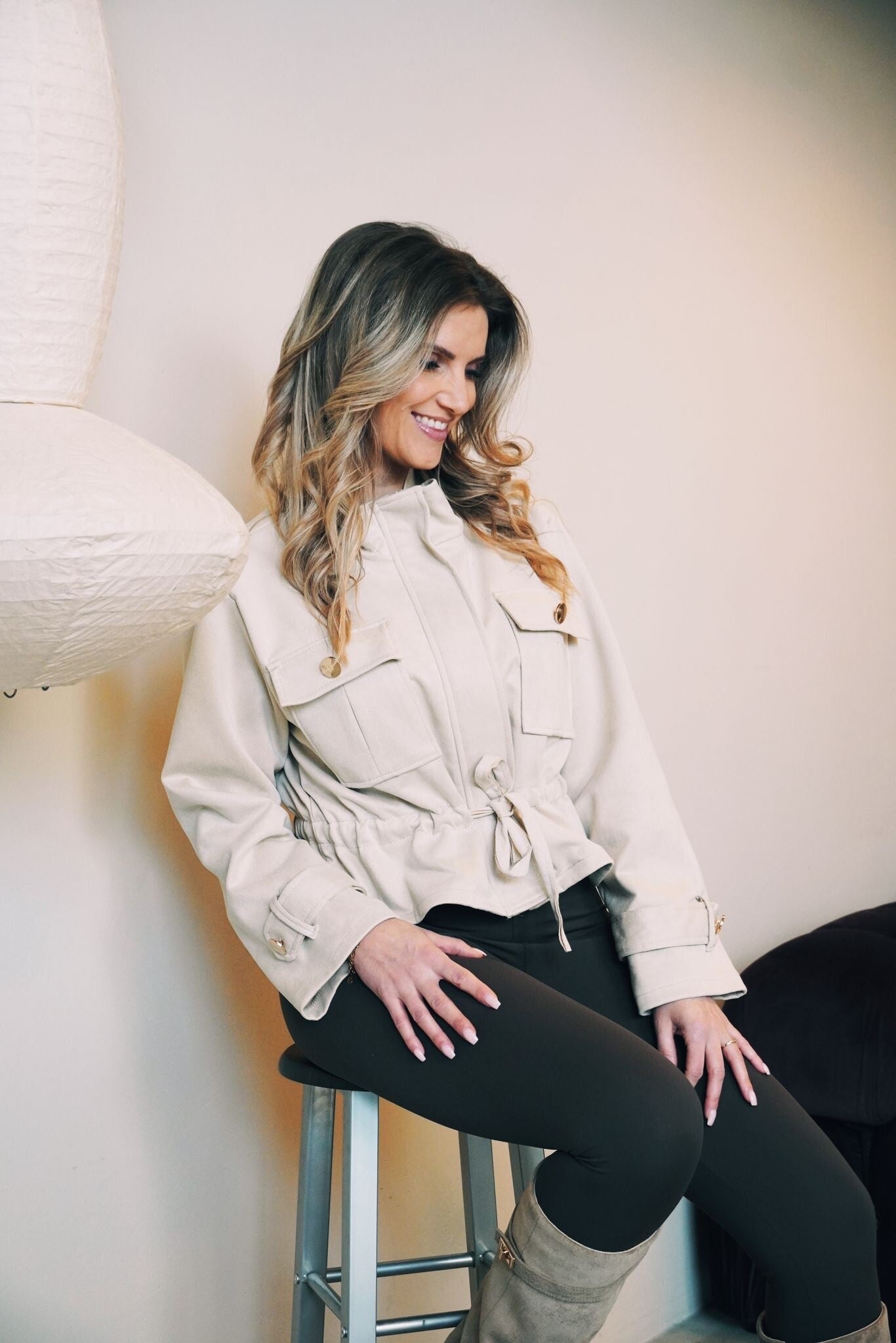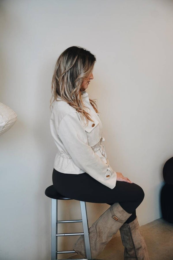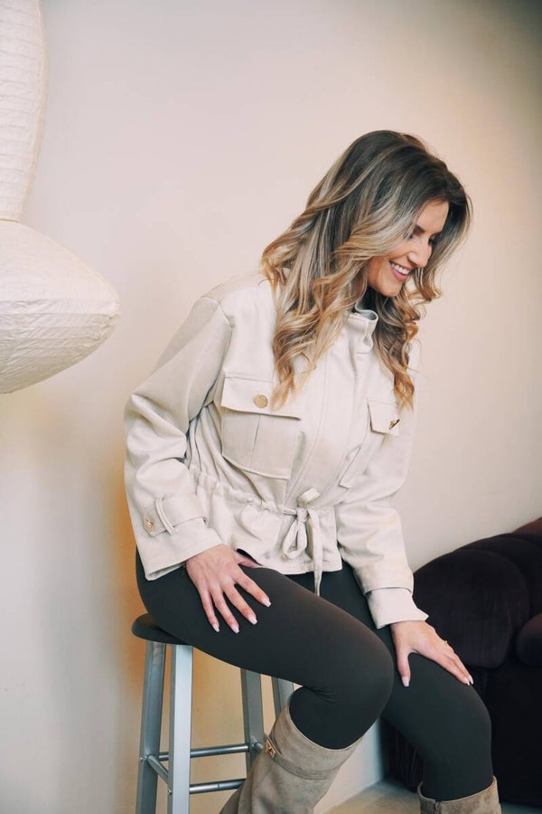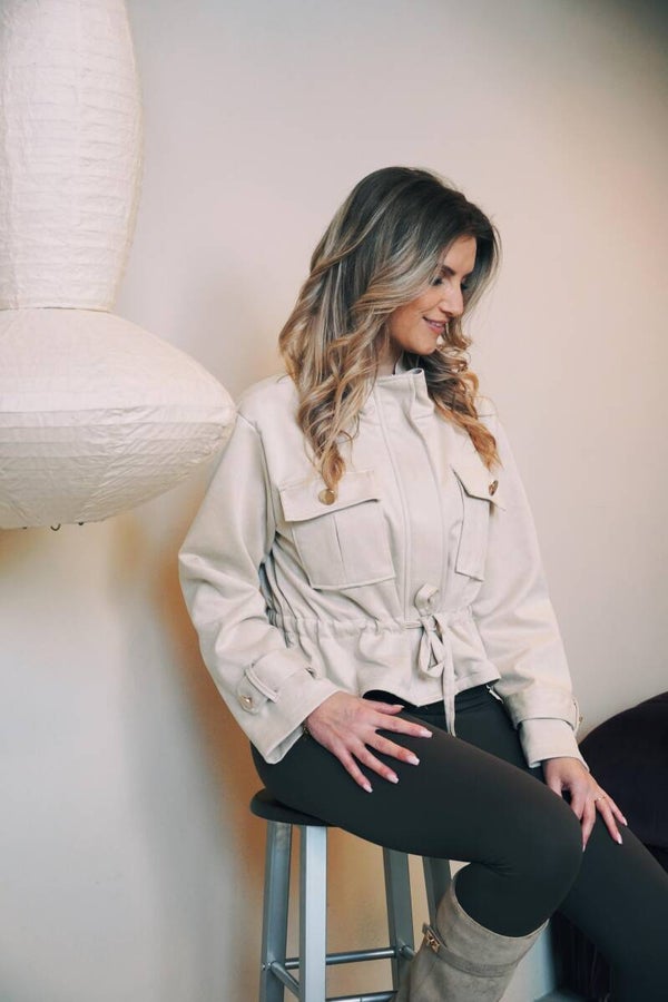 Dit crème kleurige voorjaarsjasje is zo’n item dat je meteen wilt aantrekken. De buitenkant voelt ongelooflijk zacht aan, waardoor het jasje niet alleen heerlijk zit, maar ook een luxe uitstraling heeft. Dankzij de zachte, neutrale kleur combineer je ’m moeiteloos met al jouw favoriete outfits. Met de touwtjes kan je het jasje strak of los maken voor een juiste fit.